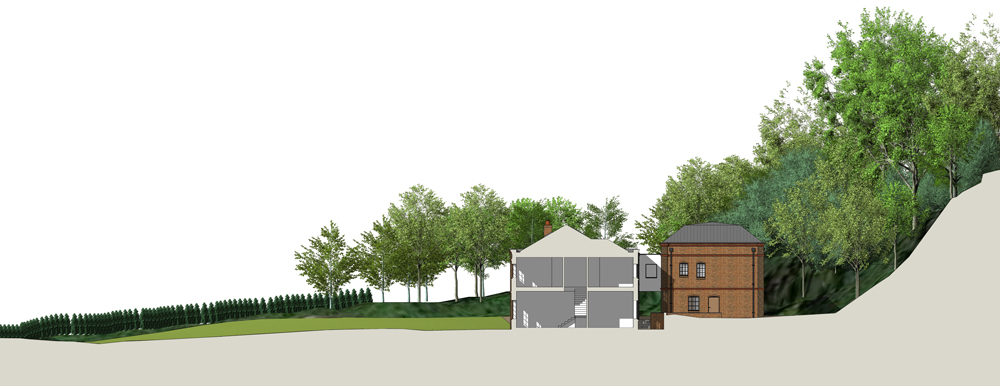 We were approached by the client after their previous architects had secured the conversion of an existing former pig barn in to a new house. It was at this point the client engaged us to look at an alternative scheme to replace the pig barn with a bespoke home drawing on the traditions of brick Victorian warehouses. The images below are taken form the planning application that was submitted to Guildford Borough Council in October 2017.