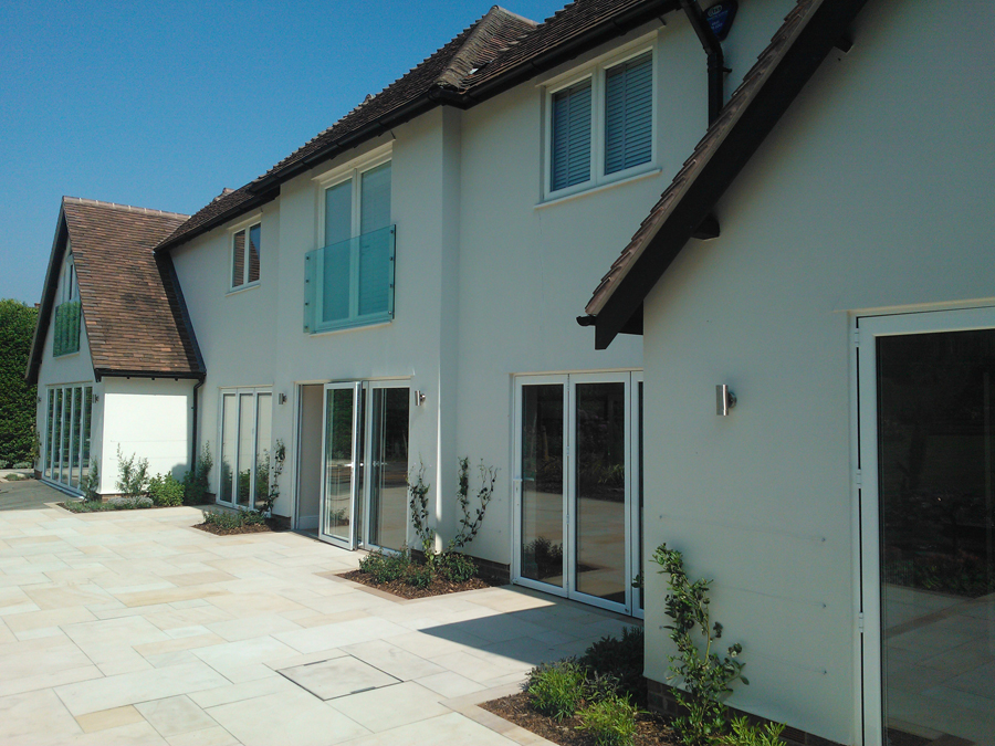 The solution proposed included the construction of two new wings to the south facing rear elevation creating a natural courtyard patio enclosed by the wings which the family room, hot tub room and new reception room opened. To the first floor the gymnasium and cinema were located above the new triple garage and hot tub area.