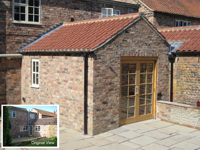Wingate Cottage is a Grade II Listed property in the Great Ouseburn Conservation Area. The existing kitchen was cramped and compromised by three doorways. An existing single-storey extension contained a utility room, boiler and pantry but blocked views of the garden.