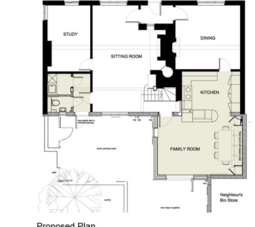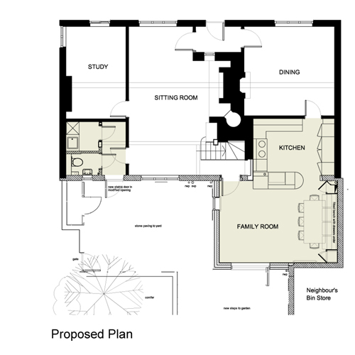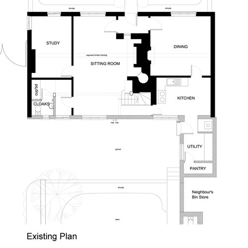The Utility Room was relocated to an under-utilised storage area and a new back door was added to provide access to the garden. The existing cloakroom was modified to suit the new layout.