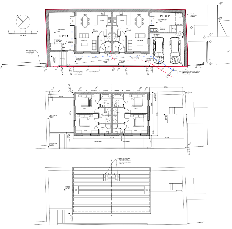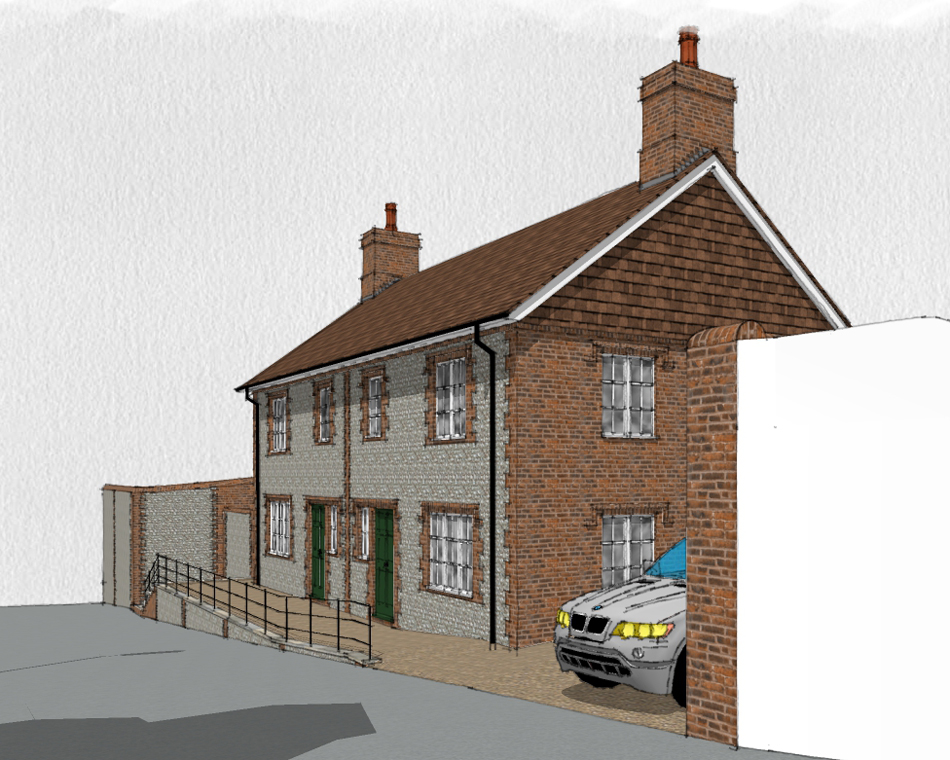 The solution was a pair of small semi-detached cottages designed to ensure daylight to the principal rooms could be achieved from the front and side elevations as there was no opportunity for natural light from the back. Two double bedrooms, each with ensuite bathrooms and an open plan ground floor make these properties perfect for shared young professionals looking to get on to the housing ladder.