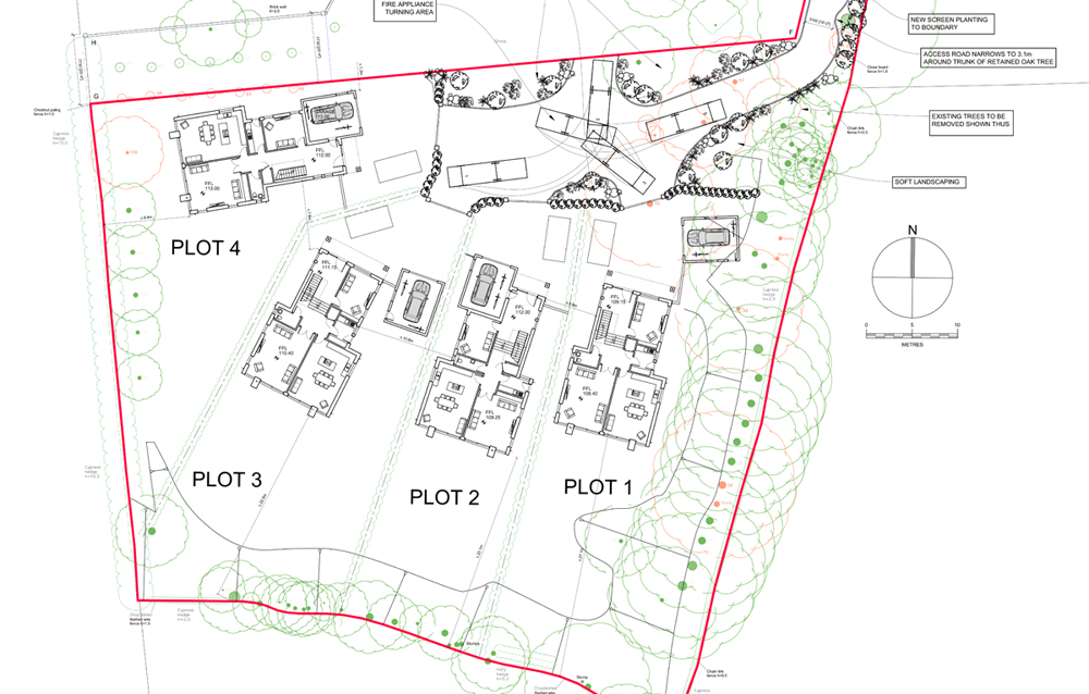 Four detached dwellings on a backland site for Surrey Developer Tkei Homes Ltd in the picturesque village of Cuckfield, West Sussex.
