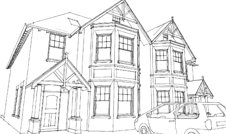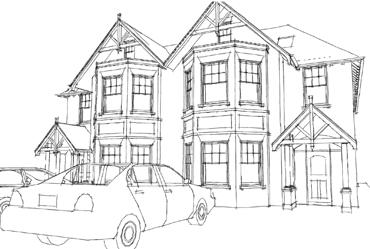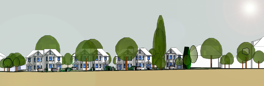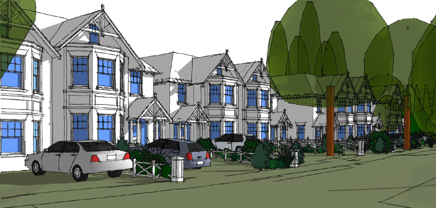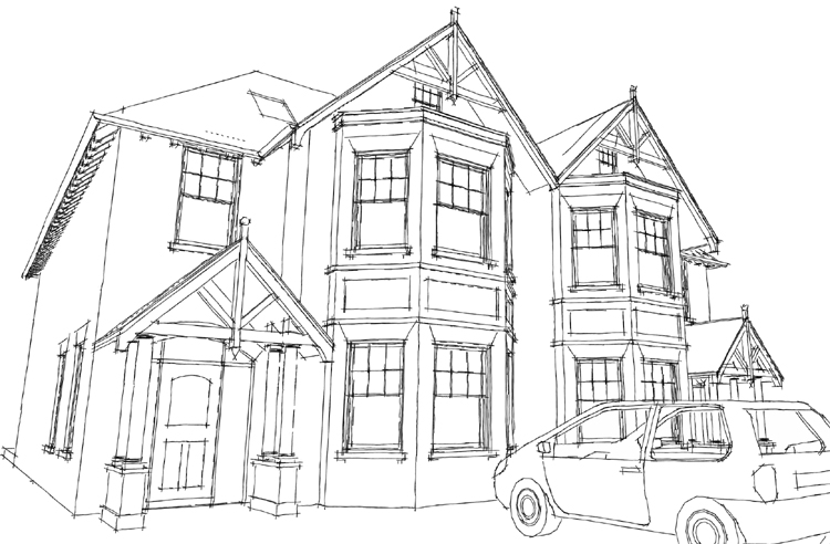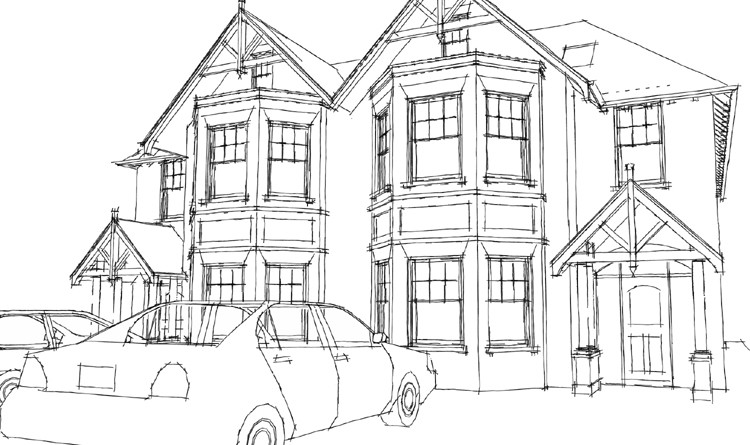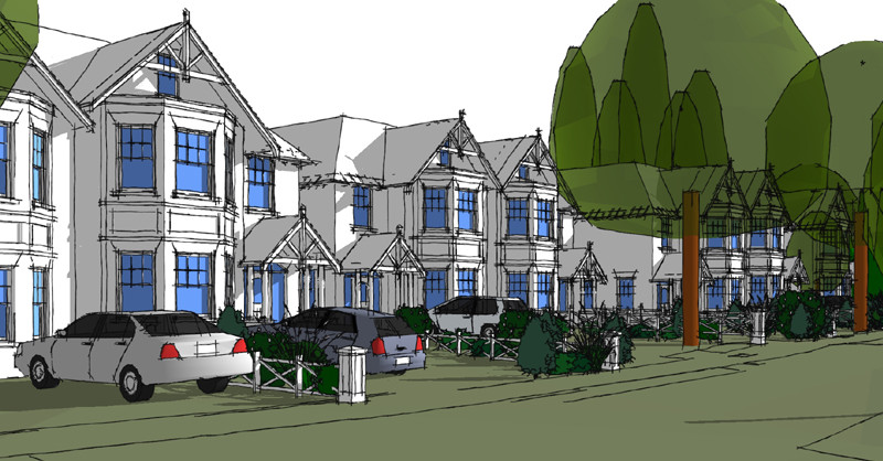 Feasibility Designs carried out for Zero6 Developments for eight new large semi-detached ‘Victorian’ houses for a site in Esher, Surrey following the demolition of three existing houses.