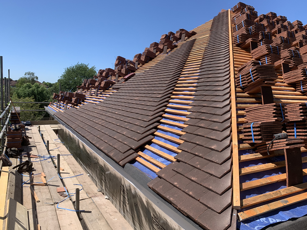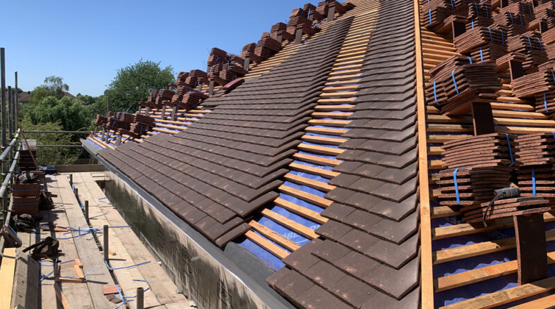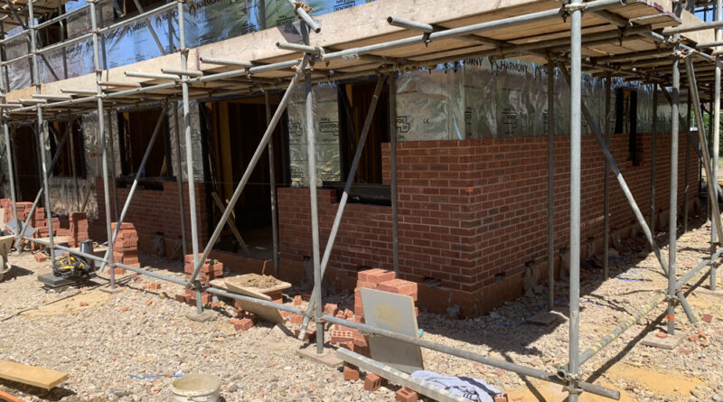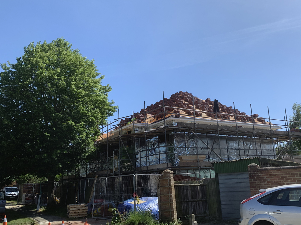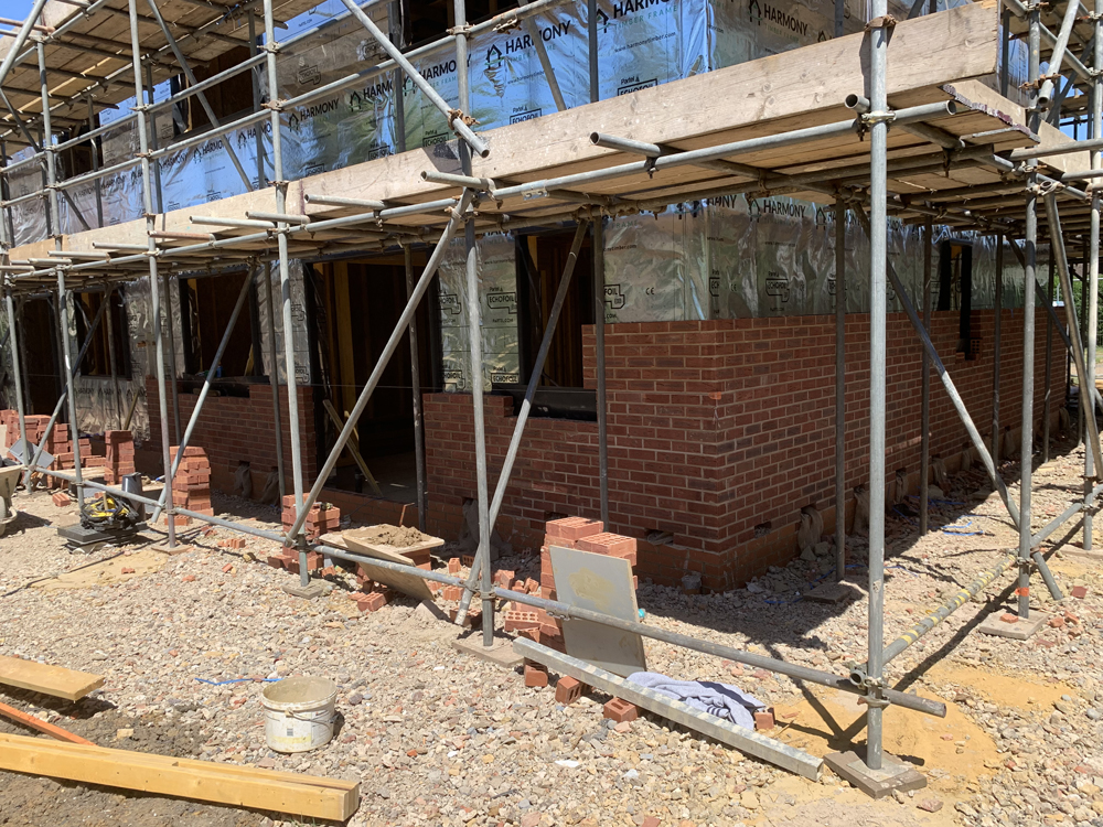Works are progressing on site following the erection of the timber frame for a pair of semi-detached new homes in the London suburb of Worcester Park for TGB Developments.