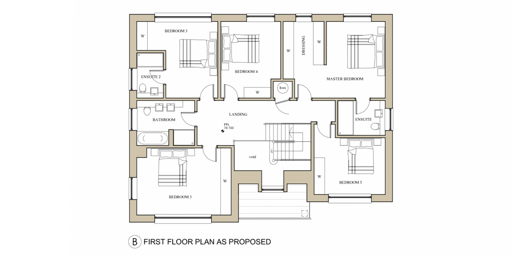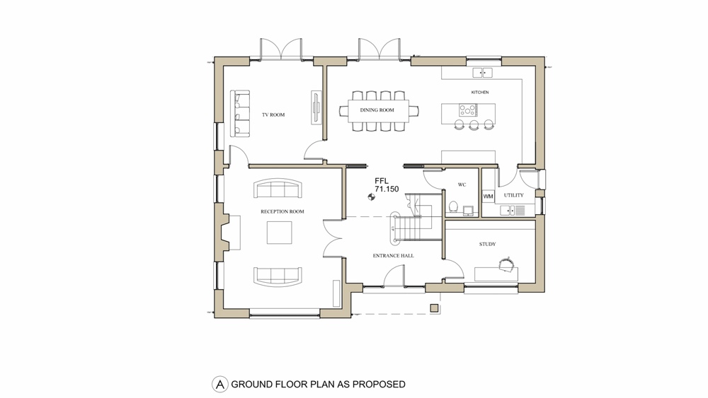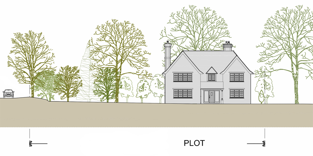 Designed to reflect the vernacular architecture of the host dwelling, Plot 1 sits behind a dense screen of Tree Preservation Order protected planting and includes steep roofs, gable ends, timber lintels, roughcast render, clay tiles roofs and tall, decorative chimney stacks. An extensive Flood Risk Assessment demonstrated clearly that the site lies outside any flood risks and a comprehensive additional planting scheme will enhance the local biodiversity and further improve the native planting scheme around the site.