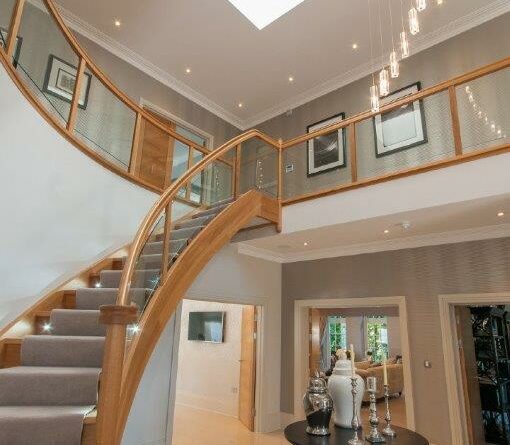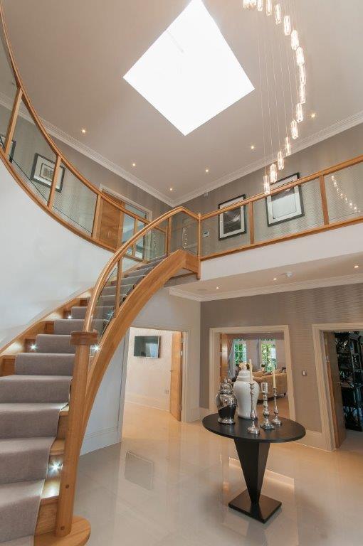 The main entrance is placed centrally on the main block and is treated with a traditional pediment and balcony arrangement. This differentiation is maintained on the rear elevation and the interjection of a central rear projecting bay and side bay in contrasting stucco render enhance the visual appearance of the main brick house.