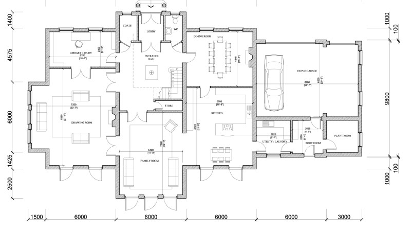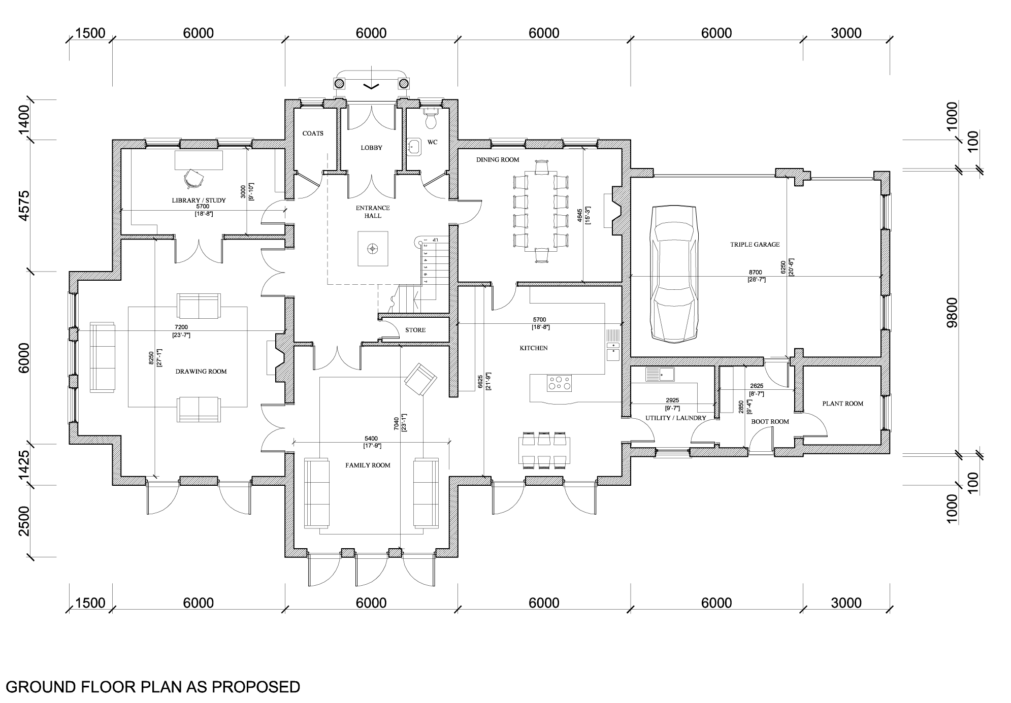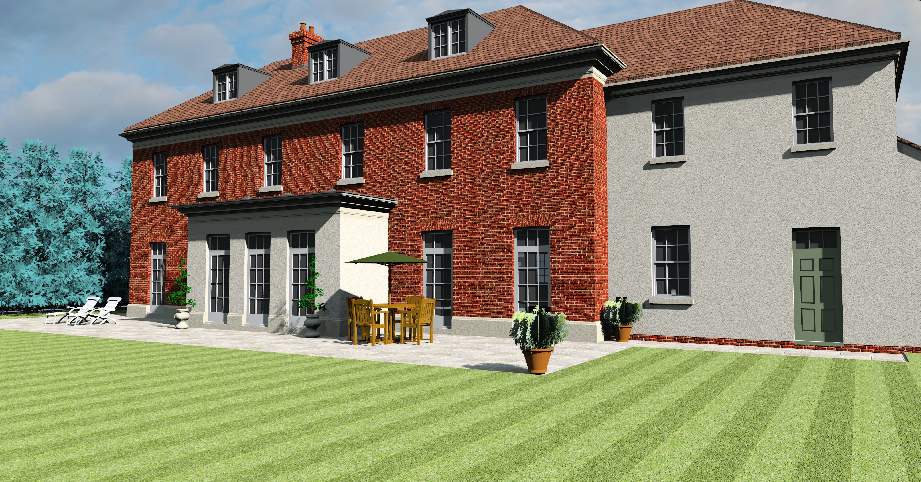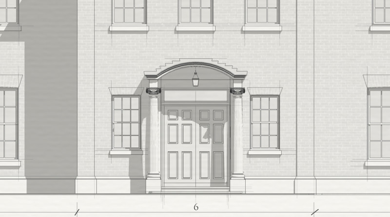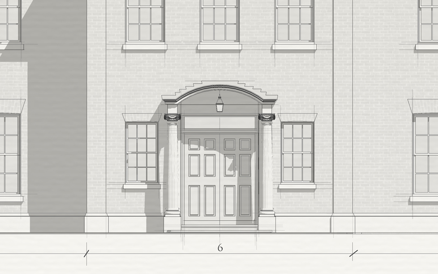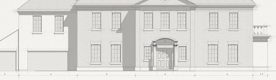 The design itself has been constructed using the best principals of traditional Georgian architecture; rhythm, proportion, scale. Both the plan and the elevations are designed using a formal geometric grid of 3m x 3m and set around strict symmetry lines.