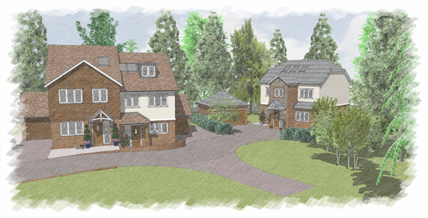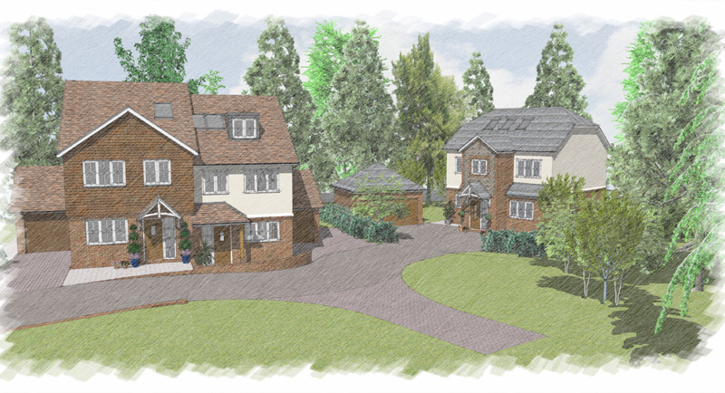 Following receipt of Outline Planning Permission we were approached by Gold Property Developments Ltd to complete the discharge of reserved matters for the development of seven new houses on a site in Old Coulsdon, Surrey.