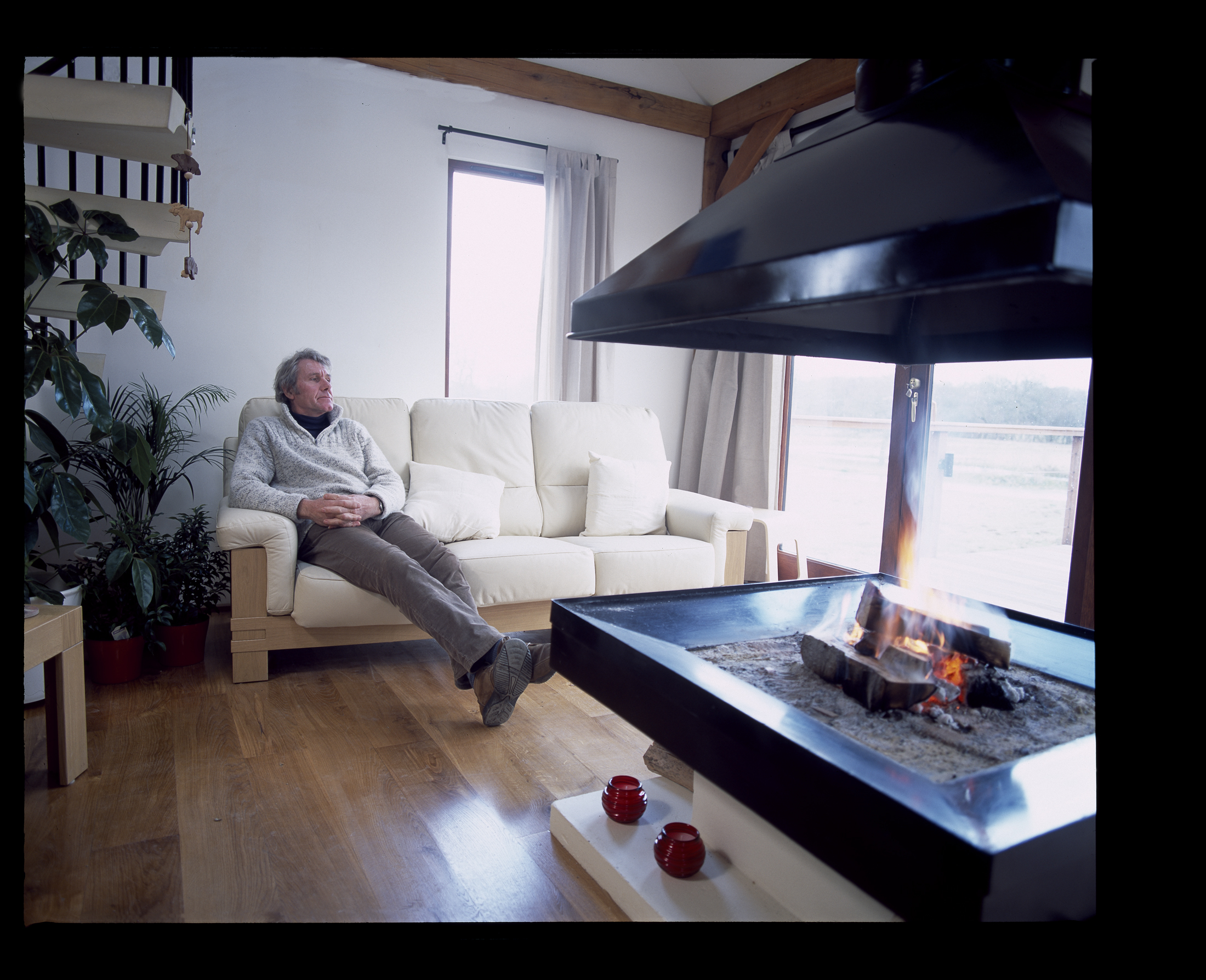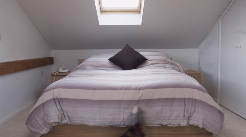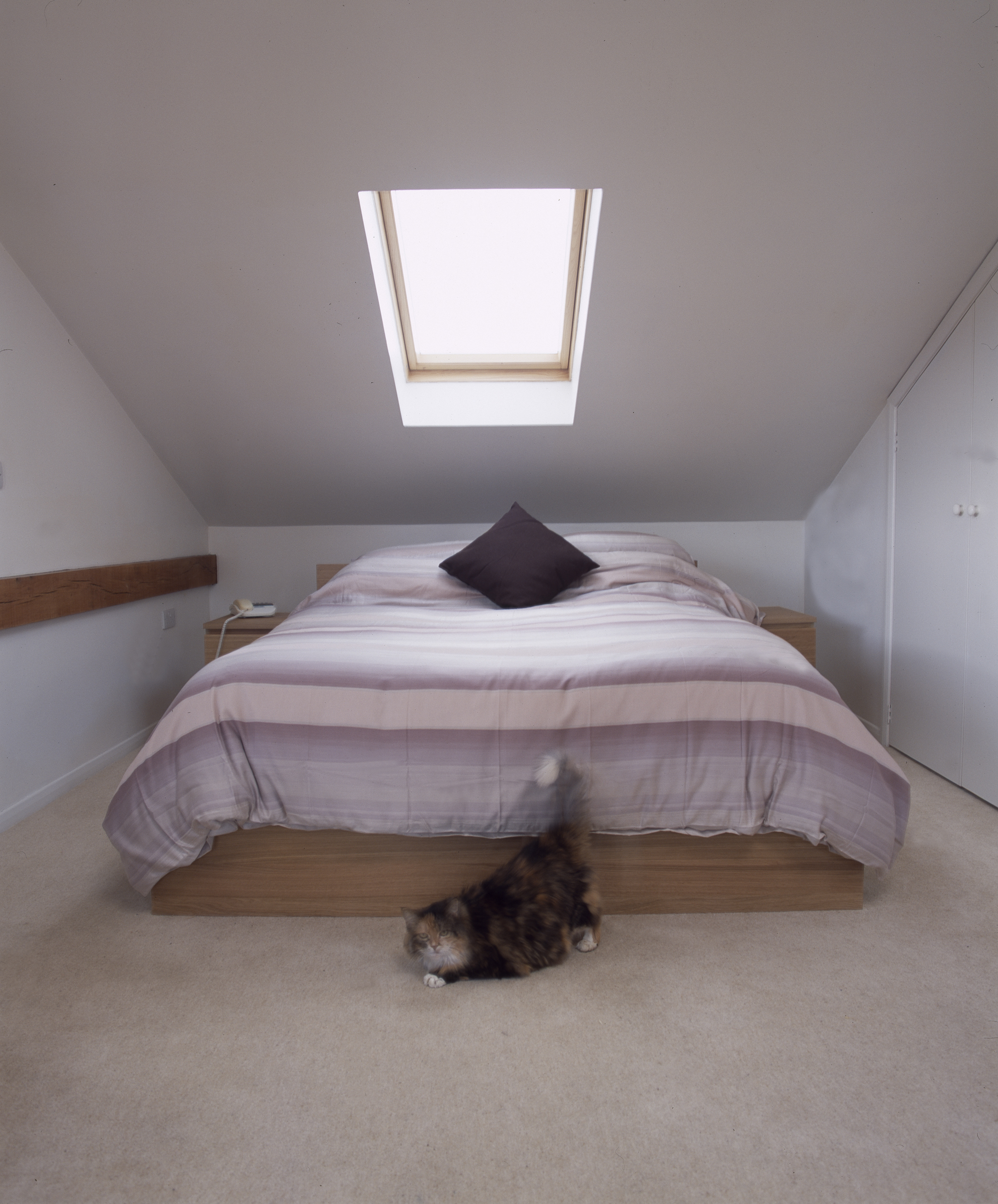 The buildings mass was minimised by housing the first floor within the generous rake of the main roof to the rear of the building, whilst also providing a gallery to the living spaces below supported off the main box frame.