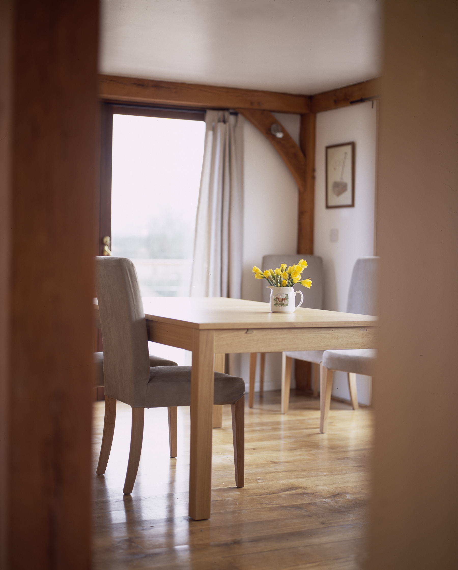 The main living space is segregated from the rest of the ground floor via a change in level, to help define the main rooms without the need to partition with full height walls which would reduce the amount of natural light enjoyed within the structure.