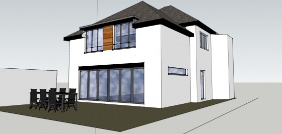The design updates the property providing a kitchen/family room overlooking the garden with two double bedrooms above.