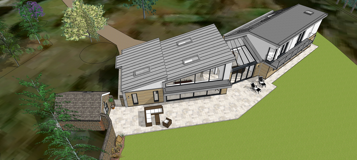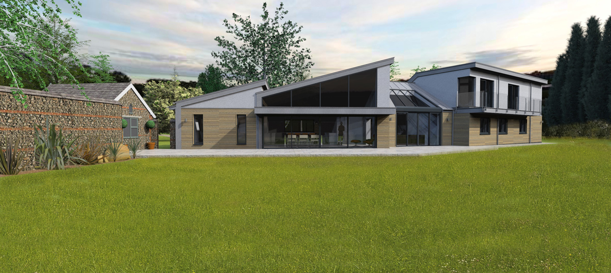 This new 330sq.m (3,550sq.ft) replacement contemporary dwelling sits within the large grounds of a smaller dwelling which is to be demolished.