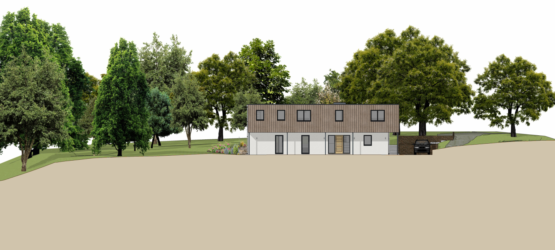 Planning permission was granted in June 2020 for this replacement home for a private client in the High Weald Area of Outstanding Natural Beauty near Tunbridge Wells, Kent.