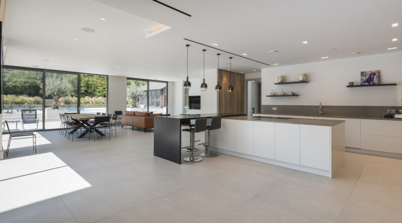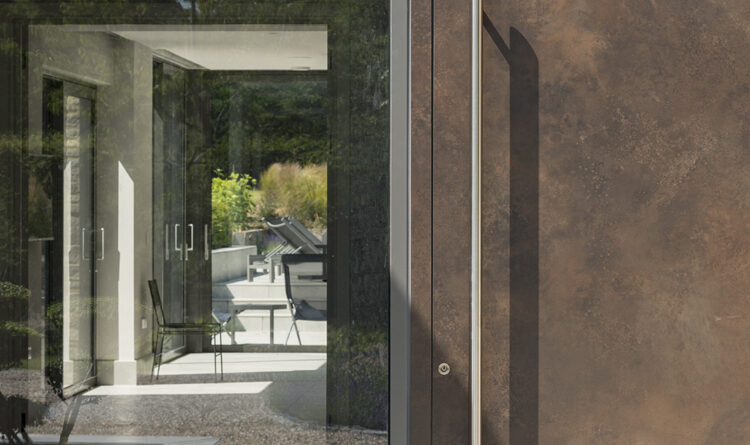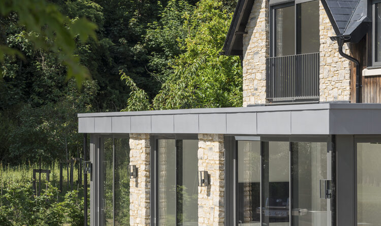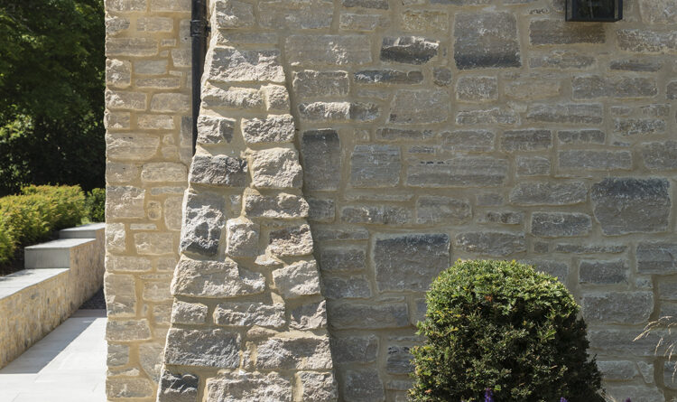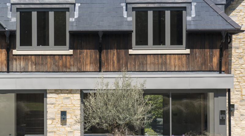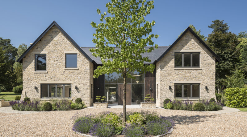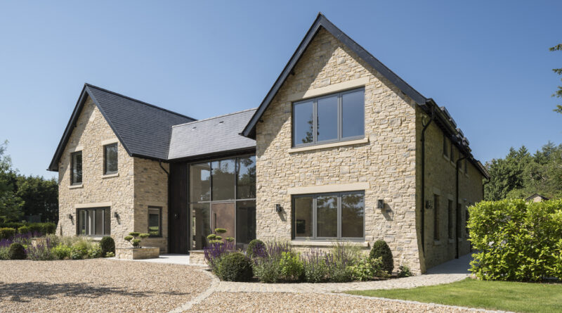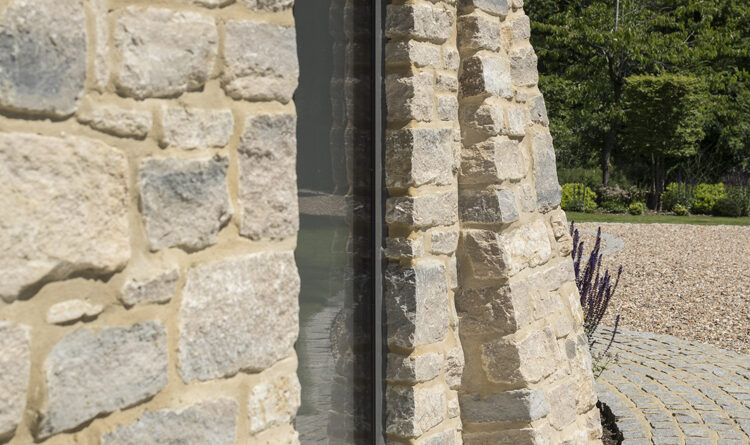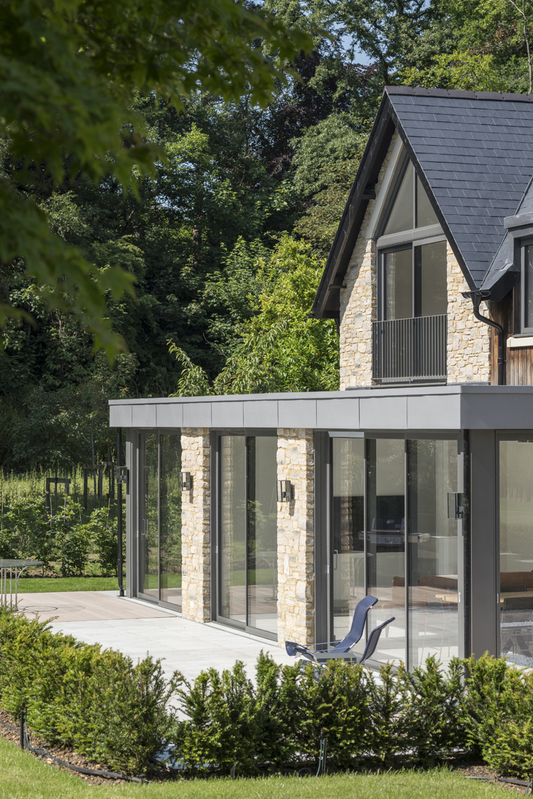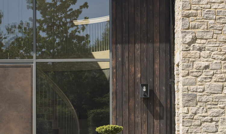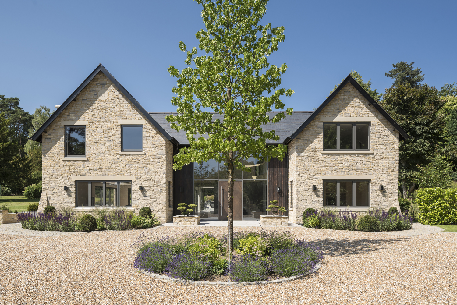 External walls built of solid Horsham stone with real stone sills and headers are complimented by fire-blackened larch cladding boards, black painted soffits and fascias and natural slate roofing.